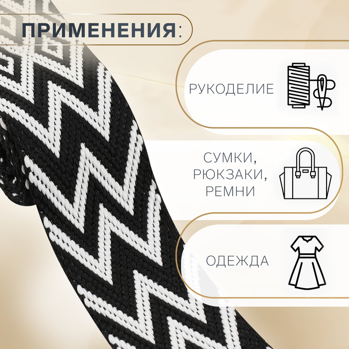 Стропа ременная «Ромбы и зигзаги», 38 мм, 3±0.1 м, чёрно-белая