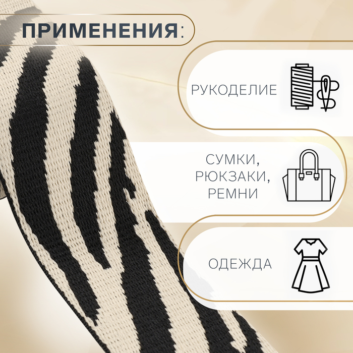 Стропа ременная «Зебра», 38 мм, 3±0.1 м, бежево-чёрная