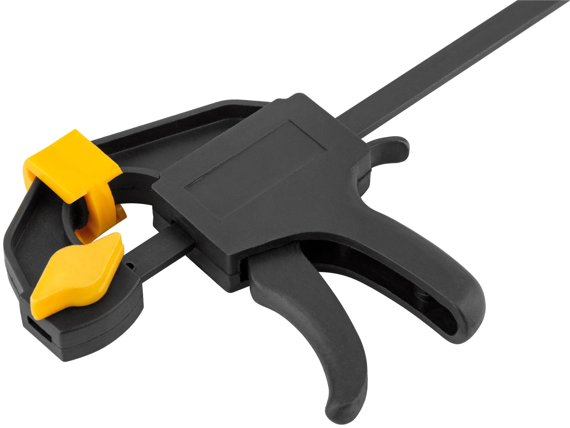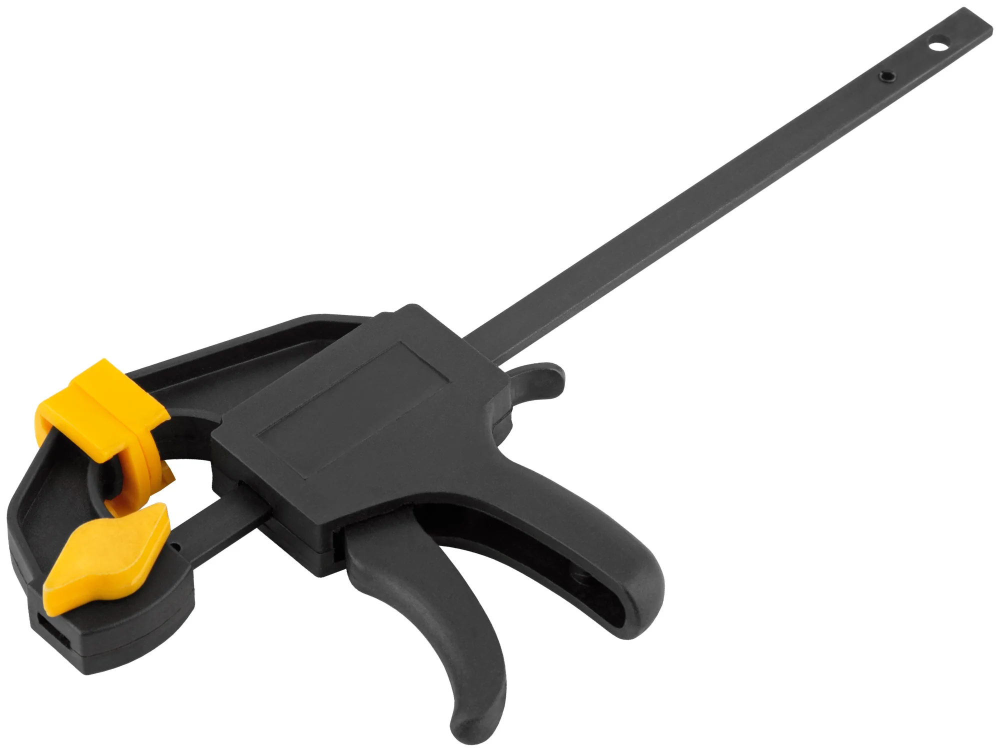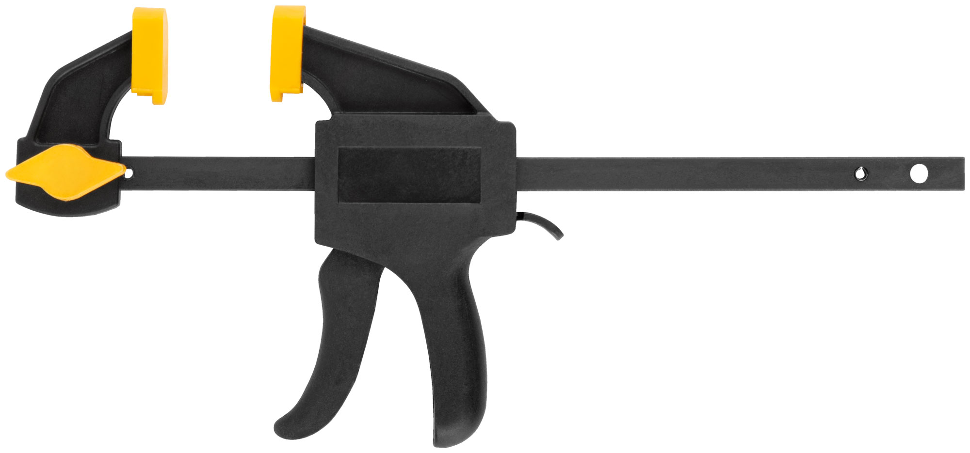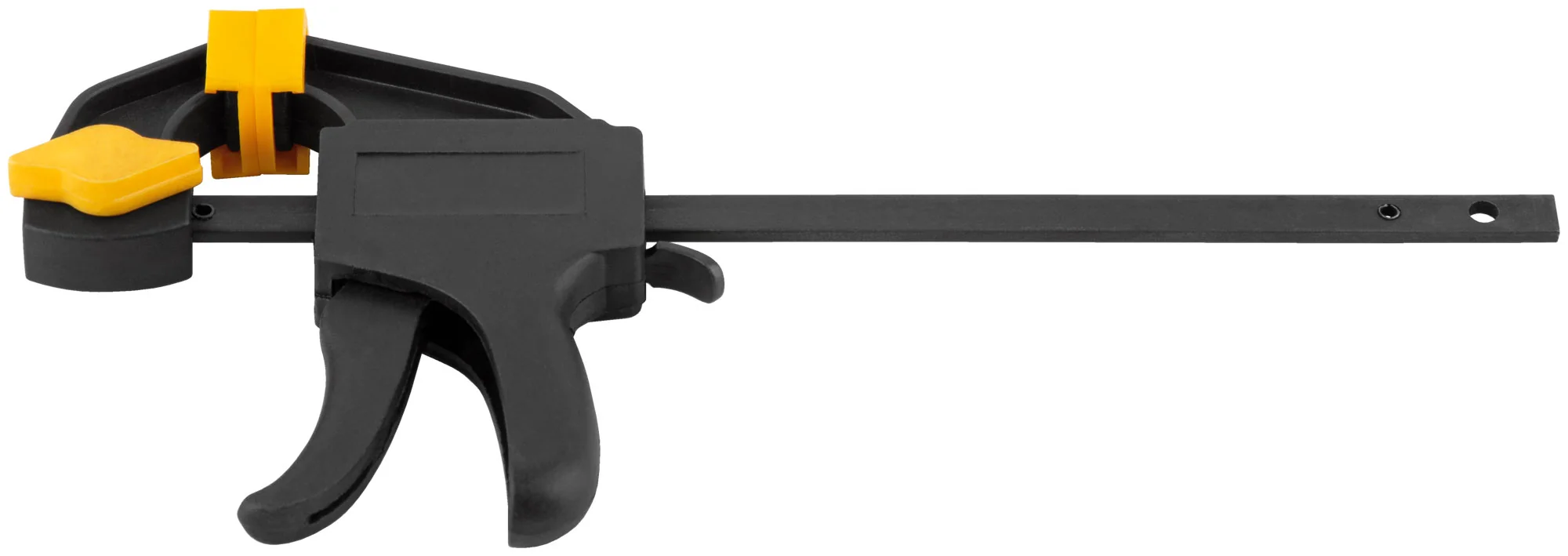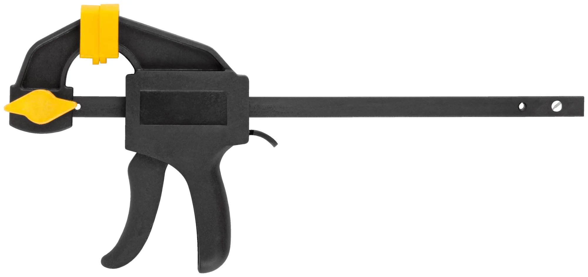 Используйте нейлоновую пистолетную струбцину FIT для быстрой и удобной фиксации деталей на рабочем месте. Это идеальный инструмент для столяров и плотников, когда требуется надежная фиксация при сборке.