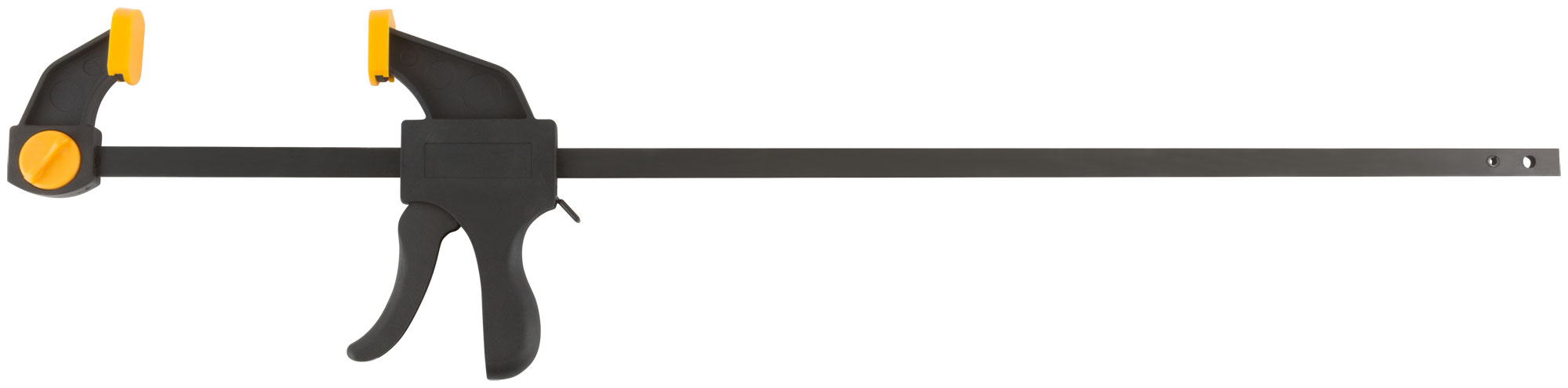 Конструкция струбцины включает нейлоновый корпус, армированный фибергласом, и направляющую из инструментальной стали. Пластиковые губки позволяют бережно фиксировать детали, не повреждая их поверхность.