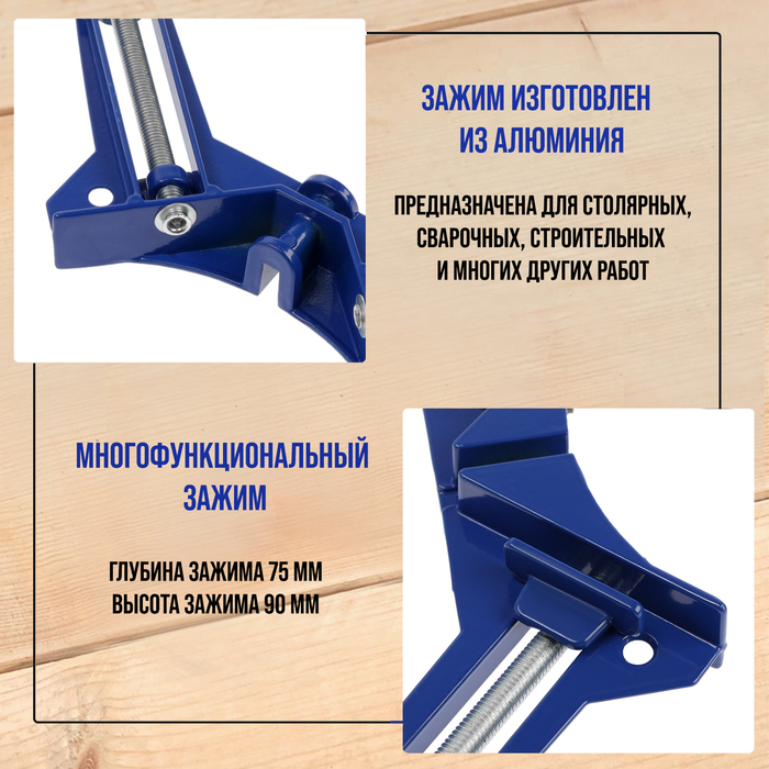 Струбцина угловая ТУНДРА, 90°, винтовой зажим, алюминиевая, 75 мм — Характеристики