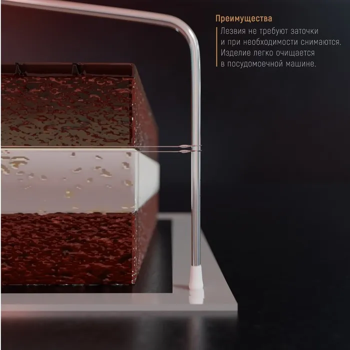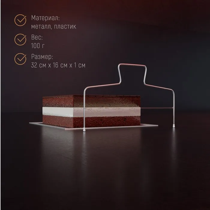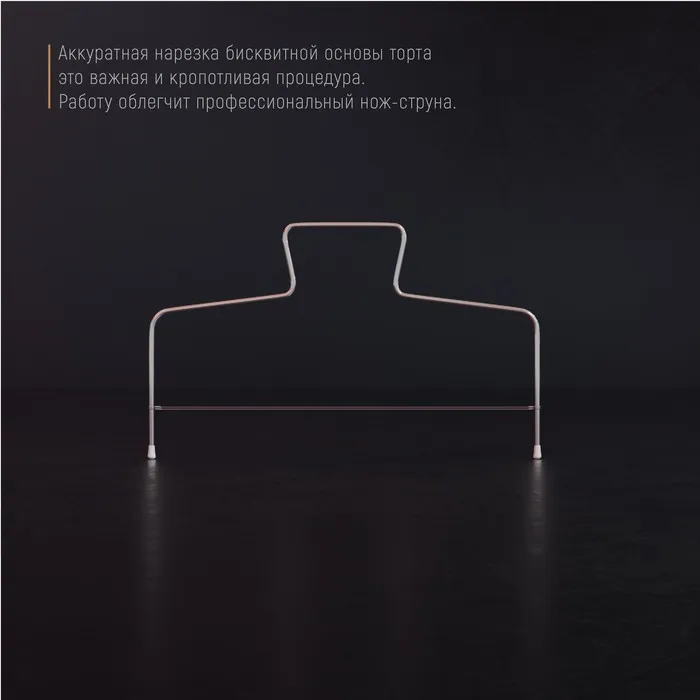 Струна для нарезки бисквита Доляна, 32×16 см – незаменимый помощник и профессионального кондитера, и домашнего кулинара. Нарезка пышного бисквита на аккуратные продольные части отнимает порой неоправданно много времени и сил. Удобный инструмент позволит разделить коржи на идеально ровные доли в считанные секунды. Обычный нож с длинным лезвием не даст вам возможности добиться такого безупречного результата.