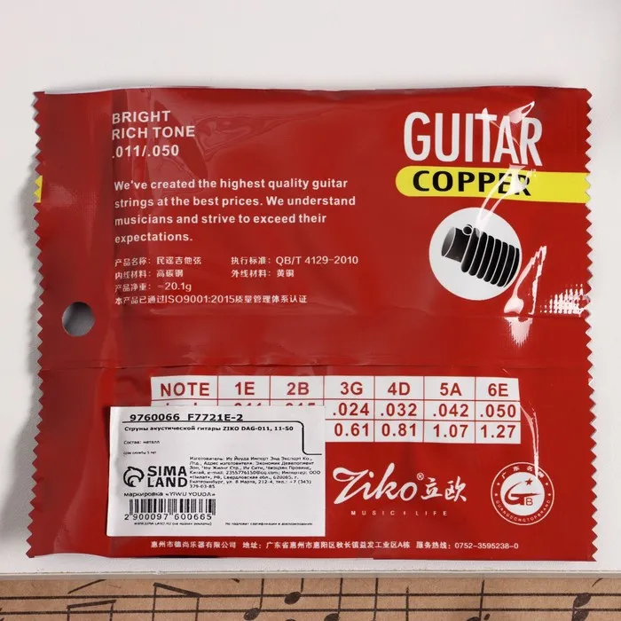 Струны для акустической гитары Ziko DAG-011 имеют яркое звучание. Сердечник басовой струны выполнен из стали с круглой латунной обмоткой.