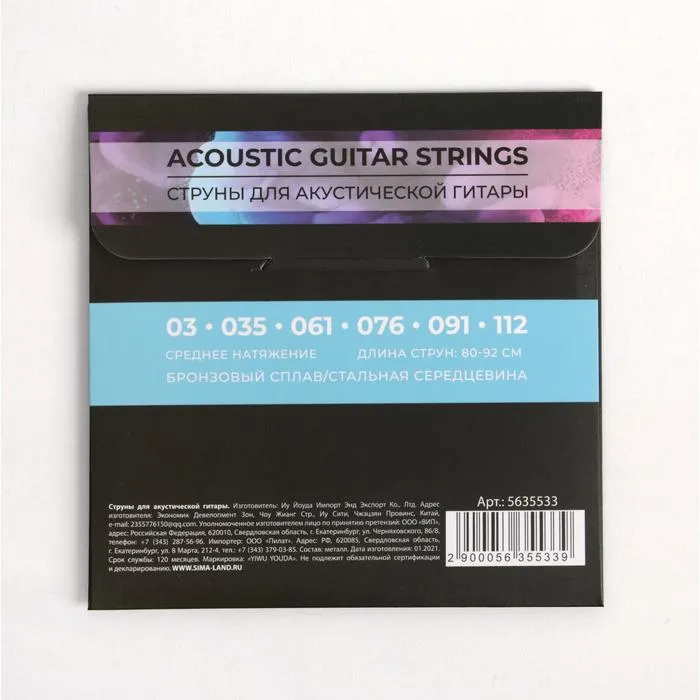 Струны для акустической гитары «Дым», 6 шт. — Характеристики