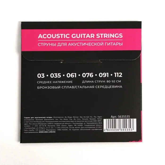 Набор струн для акустической гитары, 6 шт., .28 .35 .6 .8 1 1.25, сталь, медная обмотка