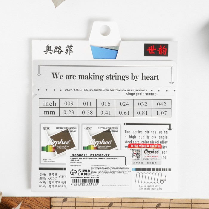 Струны для электрогитары Orphee Q25C, 009-042 — Характеристики