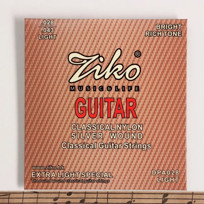 Струны для классической гитары Ziko DPA-028 выполнены из нейлона с круглой обмоткой басов из посеребренной меди.
