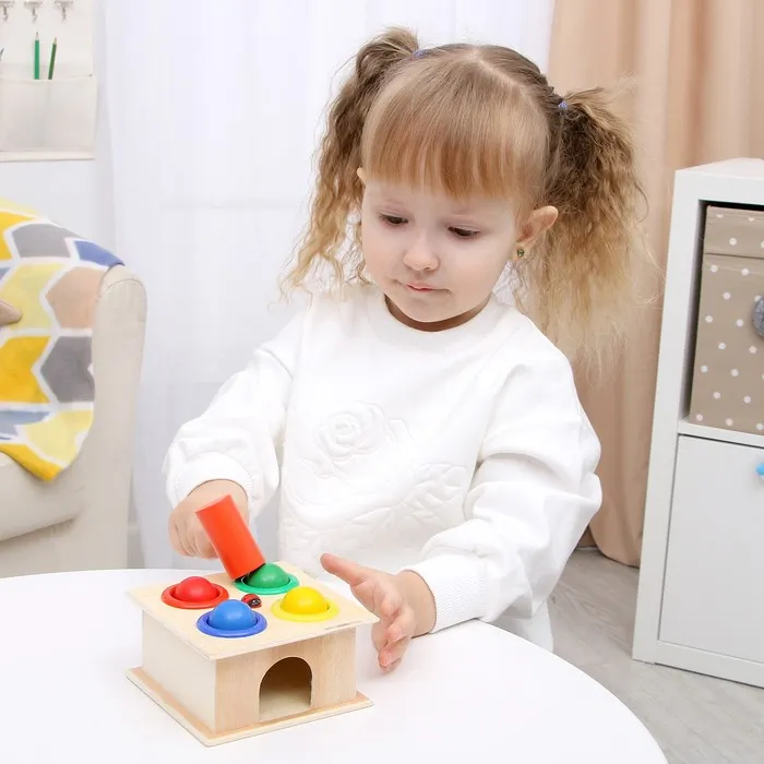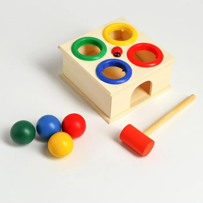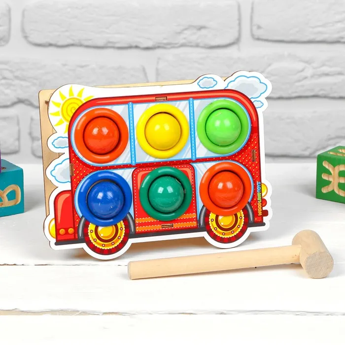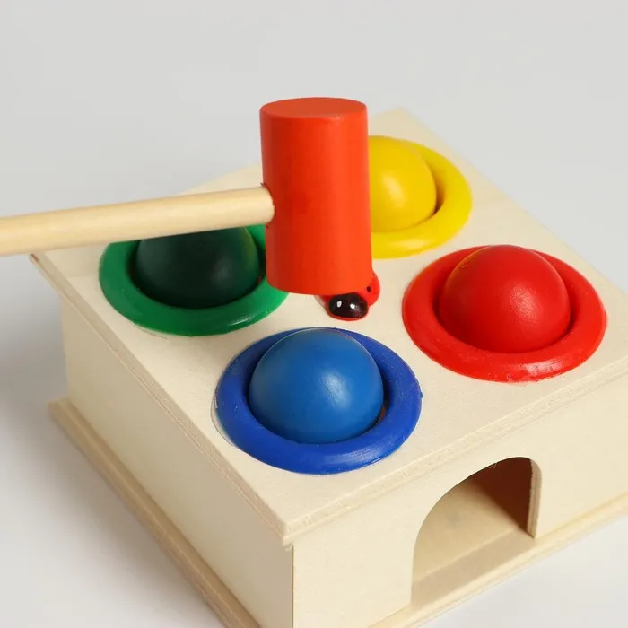 Яркая и экологичная игрушка для развития моторики и координации у детей от 3 лет. Деревянная стучалка с молоточком и шариками станет любимым занятием малыша, сочетая в себе безопасность, увлекательность и пользу.