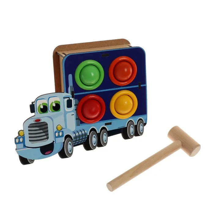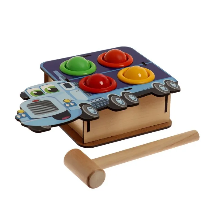 «Машинка» помогает ребёнку освоить важные навыки: развивать мелкую моторику, тренировать координацию движений и улучшать внимание. Играя с молотком и шариками, малыш учится выполнять последовательные действия, достигать целей и развивать целеустремлённость. Это не только занимательное занятие, но и источник новых знаний, которые формируют базовые навыки логики и восприятия. Каждый этап игры стимулирует самостоятельность и уверенность в своих силах.