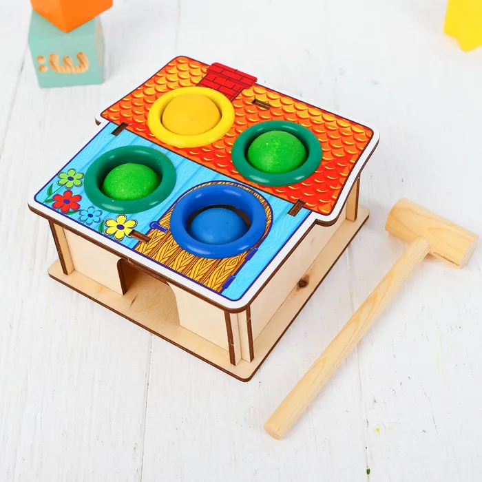 «Домик» помогает ребёнку освоить важные навыки: различать формы и цвета, развивать мелкую моторику и координацию движений. Играя с фигурками и молотком, малыш учится выполнять последовательные действия, тренирует внимание и терпение. Это не только занимательное занятие, но и источник новых знаний, которые формируют базовые навыки логики и восприятия. Каждый этап игры стимулирует самостоятельность и уверенность в своих силах.