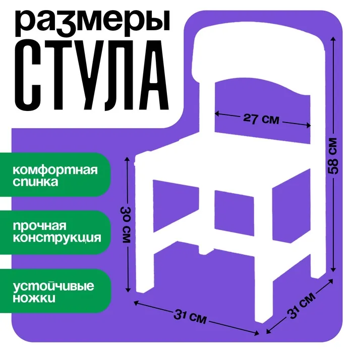 Деревянная мебель для детей отличается прочностью и долговечностью. Этот стул безопасен для малышей: материал не выделяет токсичных веществ, а конструкция продумана для устойчивости. Регулируемая высота позволяет адаптировать его под рост ребёнка, обеспечивая правильную осанку во время игр и занятий.