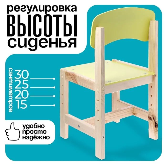 Деревянная мебель для детей отличается прочностью и долговечностью. Этот стул безопасен для малышей: материал не выделяет токсичных веществ, а конструкция продумана для устойчивости. Регулируемая высота позволяет адаптировать его под рост ребёнка, обеспечивая правильную осанку во время игр и занятий.