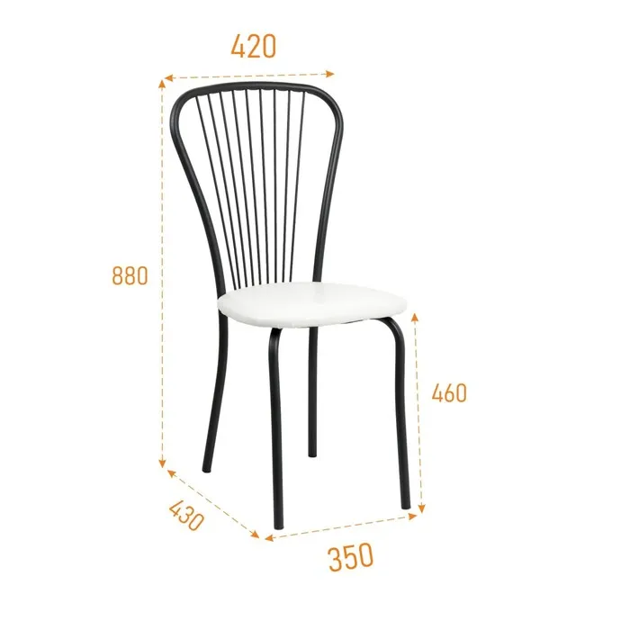 - Материал ножек и корпуса: металл. Прочный и долговечный материал, обеспечивающий надежность и устойчивость стула.