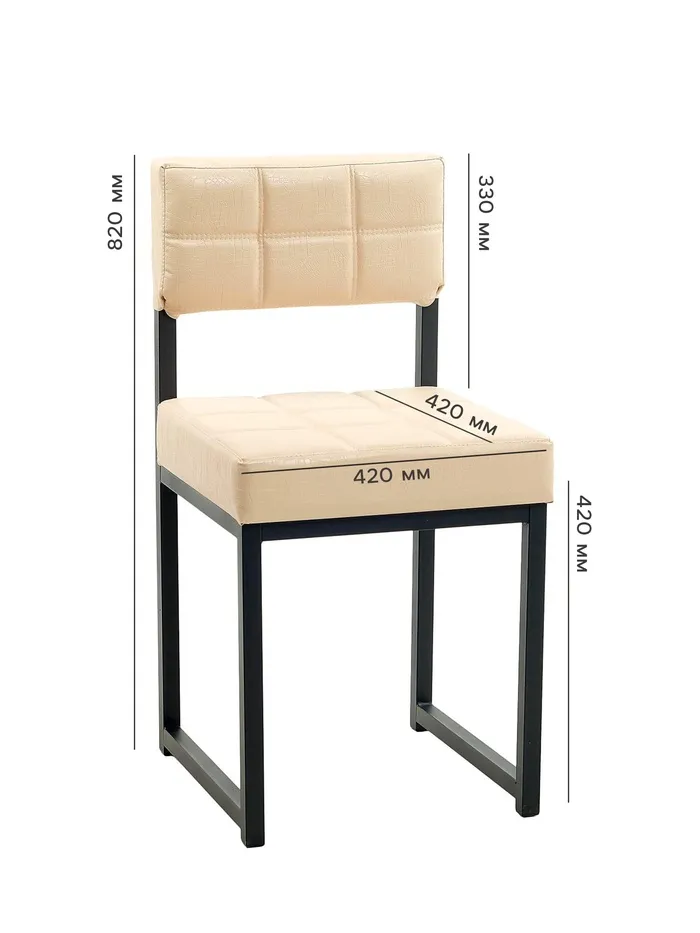 Стул станет ярким акцентом в вашем интерьере, привнося в него нотки индустриального шика. Стиль лофт подчеркивается черными металлическими ножками и обивкой, имитирующей молочную кожу рептилии.