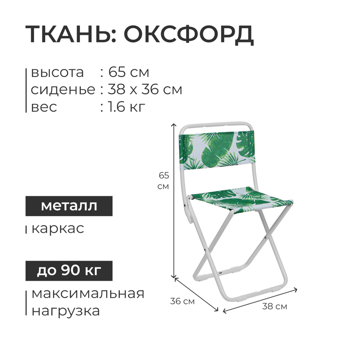 Стул складной Nika, 38 х 36 х 65 см, принт тропические листья — Характеристики