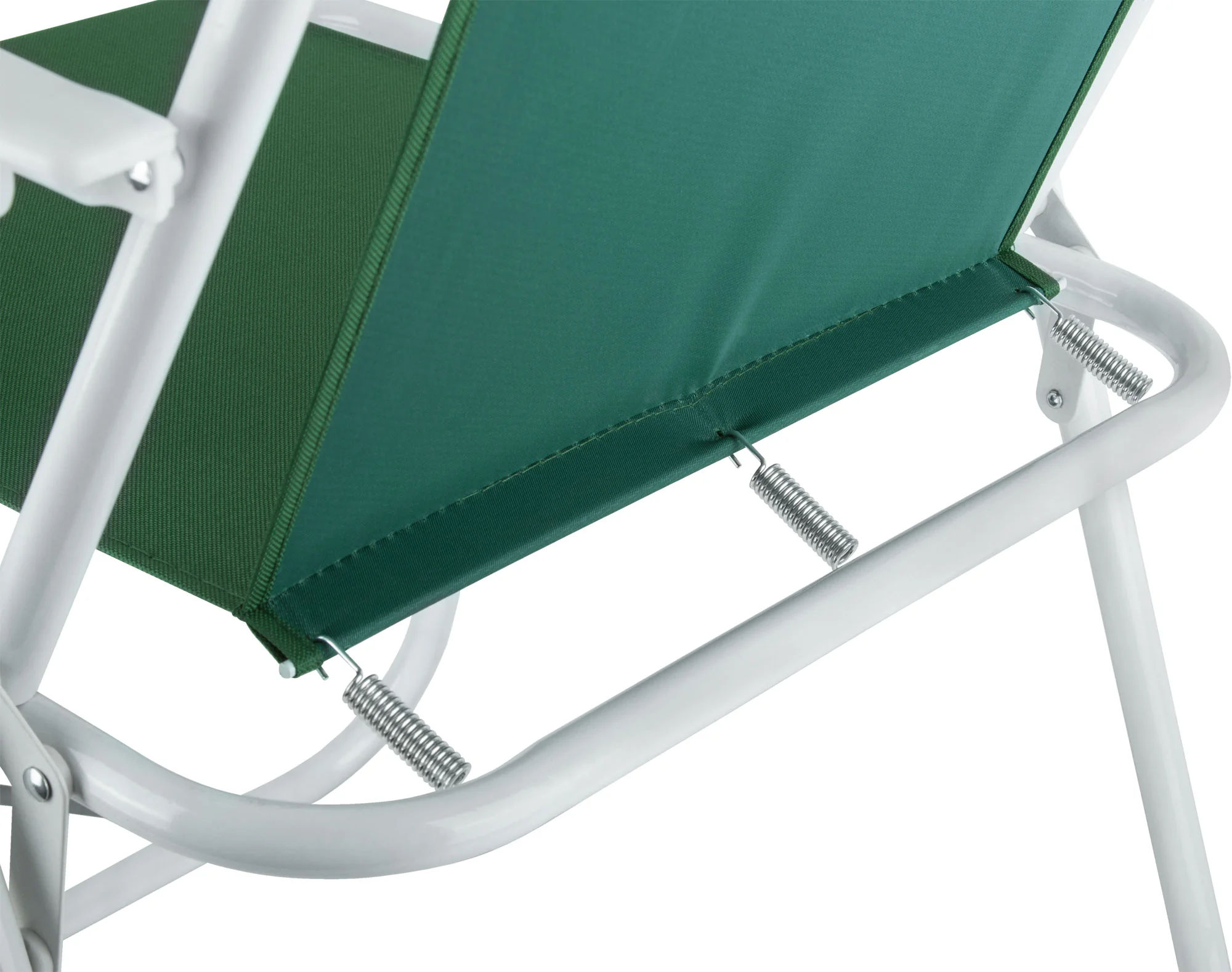 Складной механизм стула позволяет быстро и удобно складывать его для транспортировки и хранения. Подлокотники добавляют дополнительный комфорт, позволяя расслабиться и наслаждаться отдыхом.