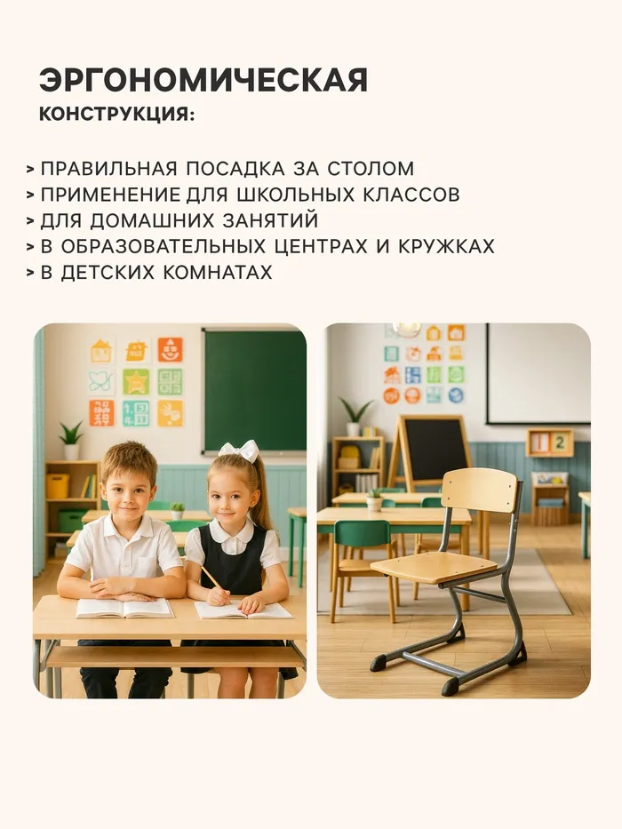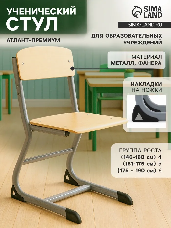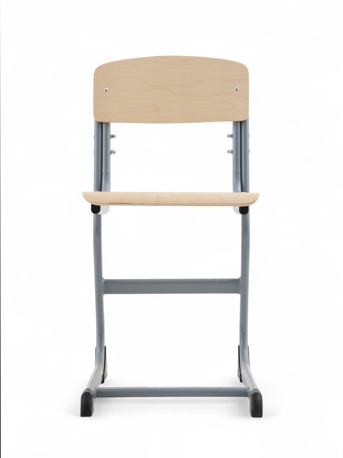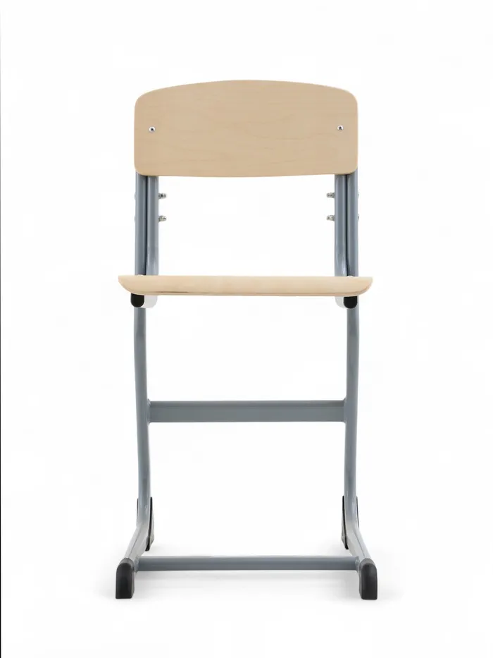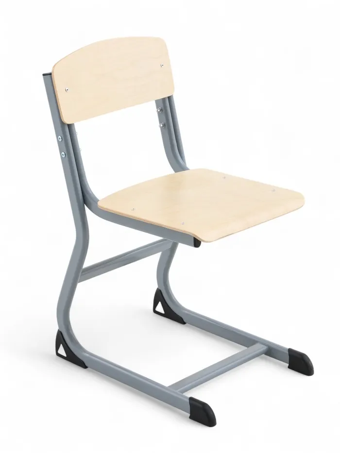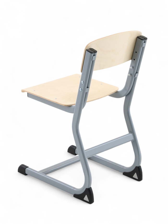 Ученический стул рассчитан на группу роста 4–6. Конструкция обеспечивает посадку для детей школьного и дошкольного возраста. Изделие сочетает прочный металлический каркас и фанерные элементы, рассчитанные на длительное использование.