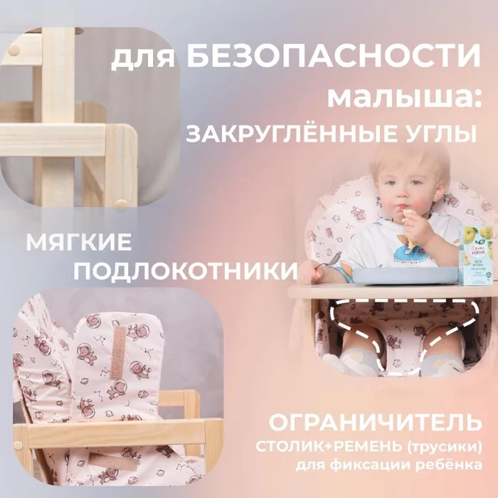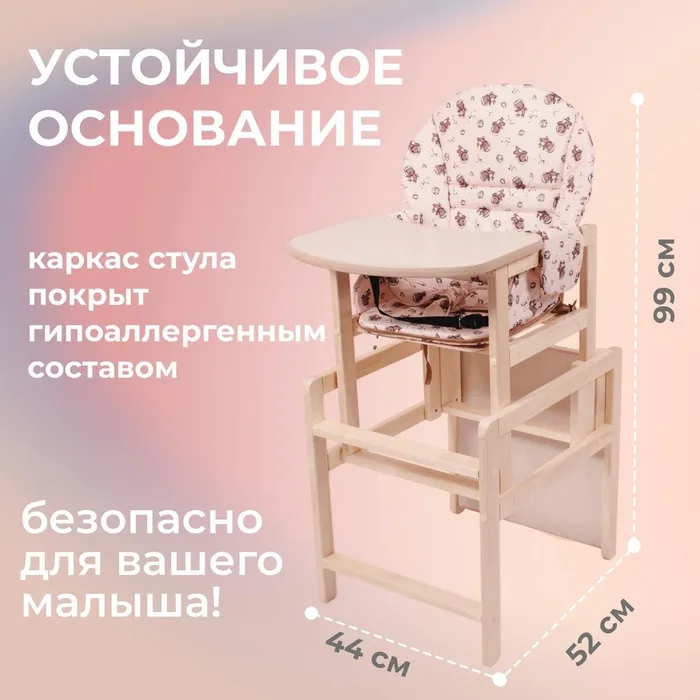 Стульчик для кормления деревянный «Космонавты», трансформер, бежевый — Характеристики