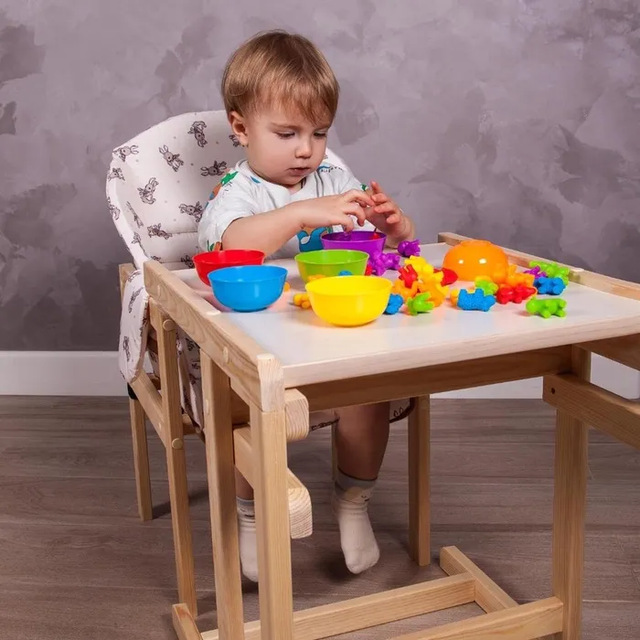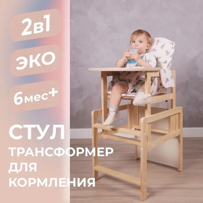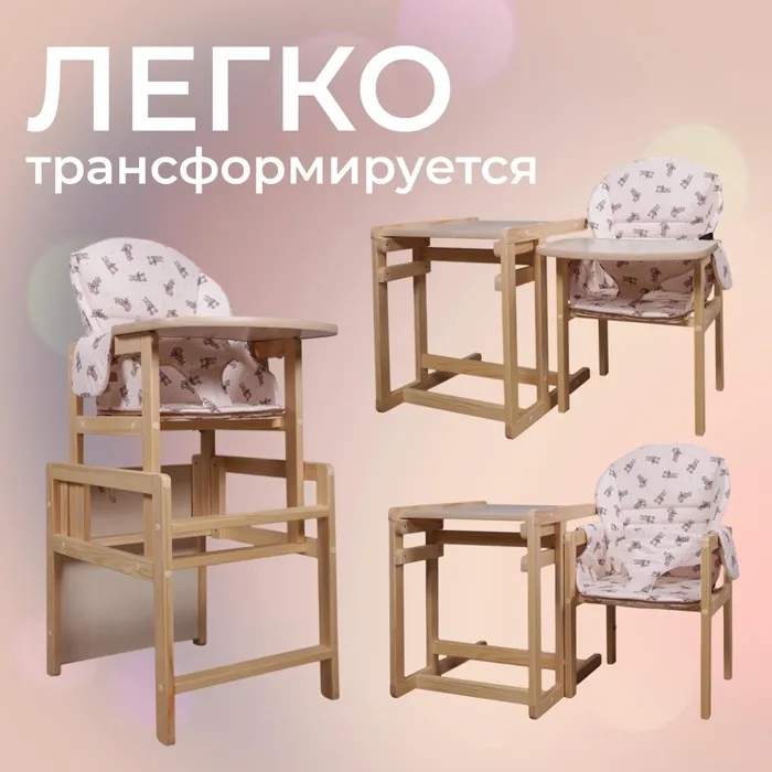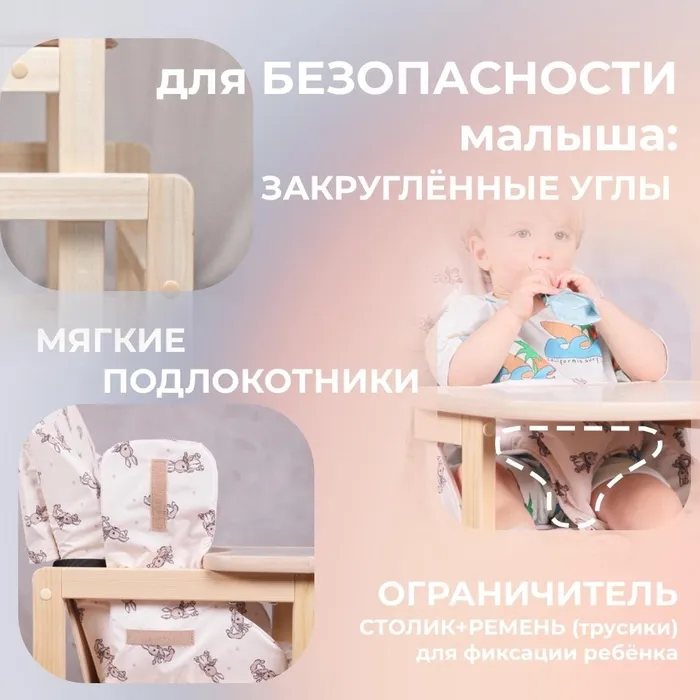Стульчик для кормления деревянный «Зайчики», трансформер, бежевый — Характеристики
