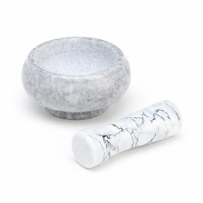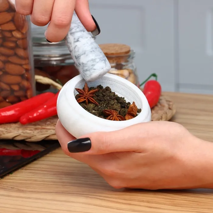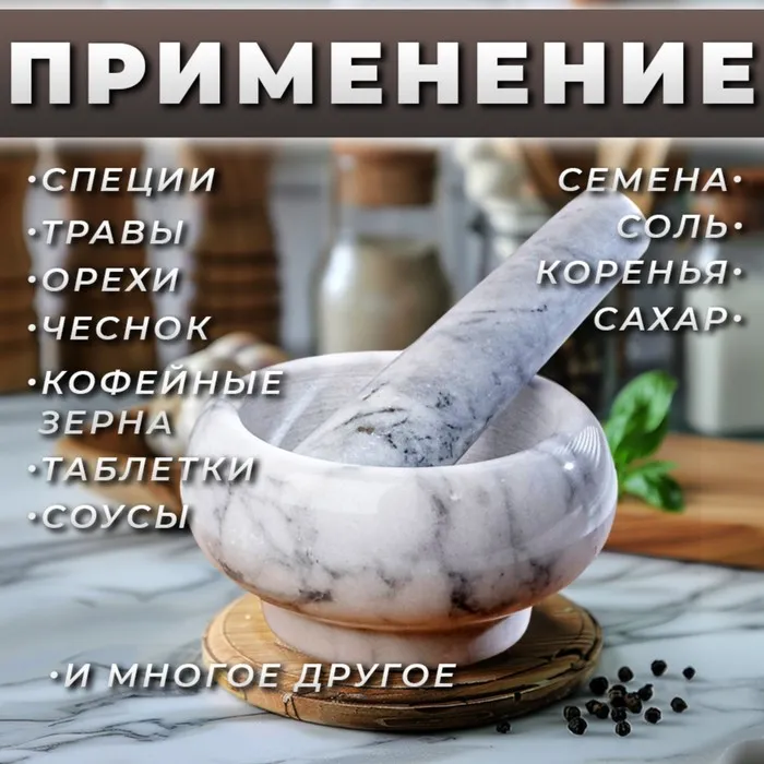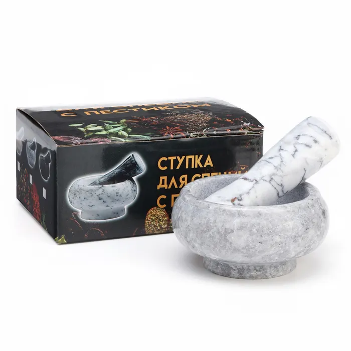 Ступка с пестиком — это универсальное кухонное приспособление, которое идеально подходит для измельчения, дробления и растирания специй, трав, зёрен, орехов, чеснока, таблеток, семян, соли и т. д.
