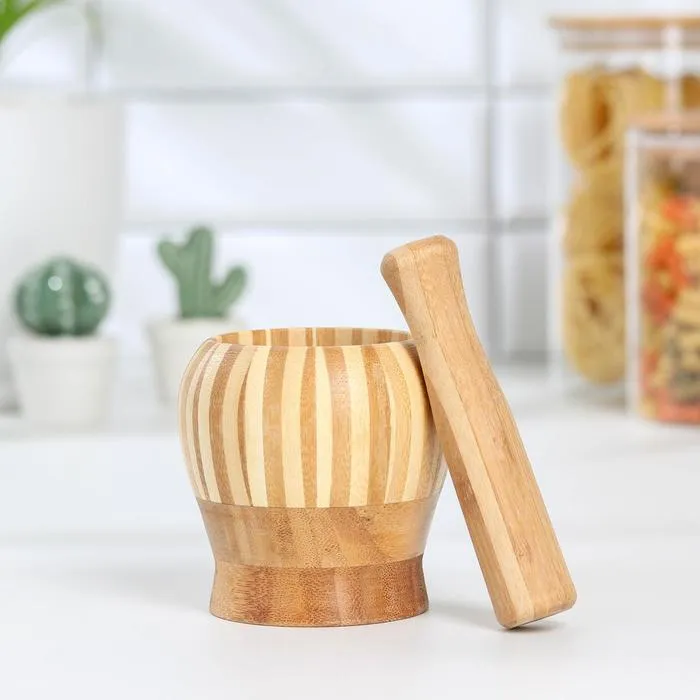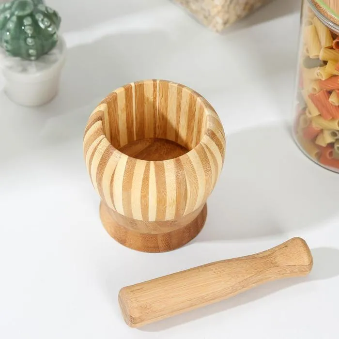 Ступка с пестиком Доляна «Полоски», бамбук, 10×11 см — Характеристики