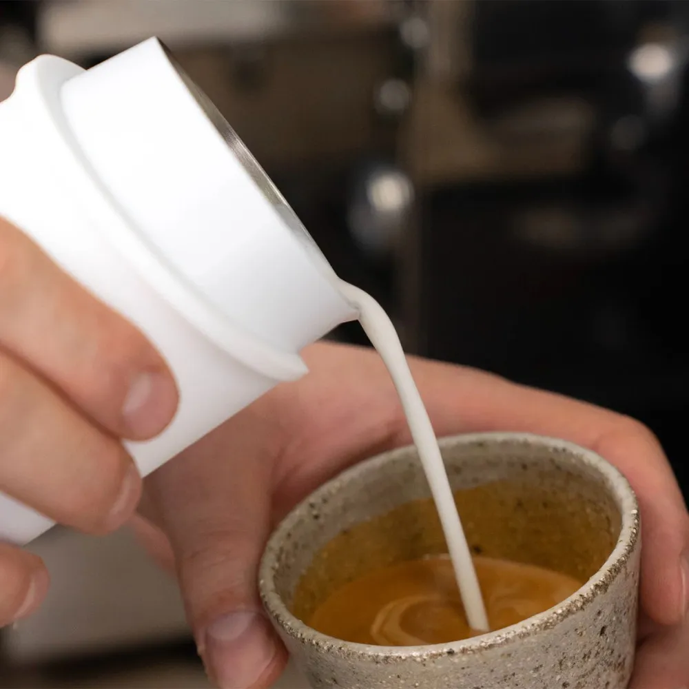 Эта молочница «FlowTip» без ручки обеспечивает более естественное удержание и лучшую управляемость, что делает её идеальной как для домашнего использования, так и для профессиональных бариста.
