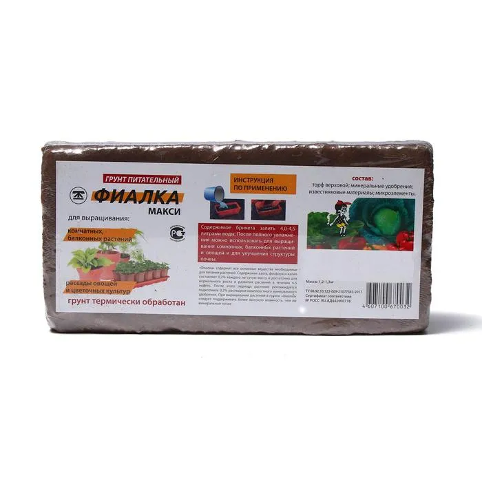 Субстрат торфяной «Фиалка», для рассады овощей и цветочных культур, в брикете, 8 л — Характеристики