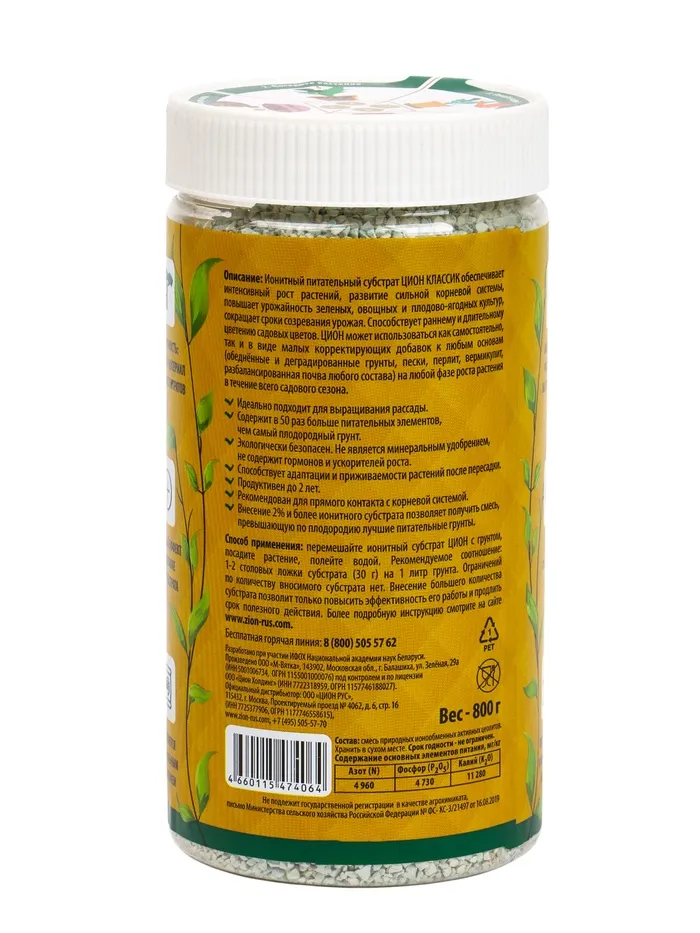 Ионитный субстрат ZION - это натуральная комплексная добавка, которая содержит в себе все элементы питания, необходимые для гармоничного роста растения.