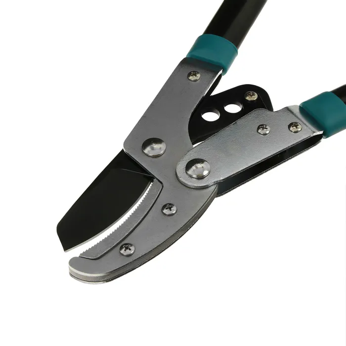 Наковальня оснащена крюком и насечками, что позволяет лучше захватывать и удерживать крупные ветки во время среза.