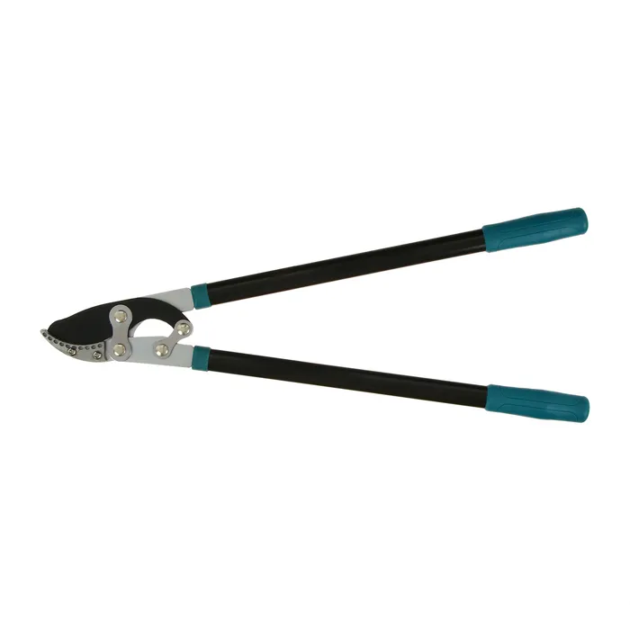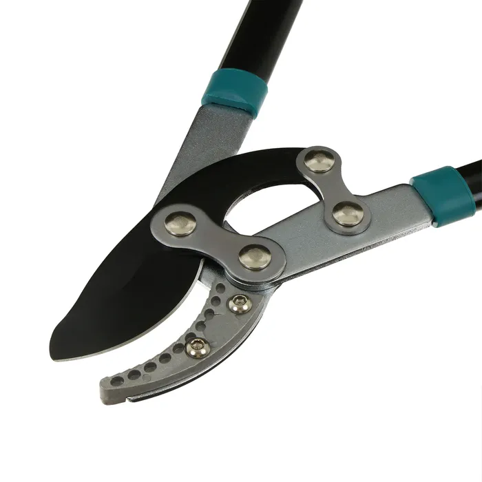 Наковальня оснащена крюком и насечками, что позволяет лучше захватывать и удерживать крупные ветки во время среза.