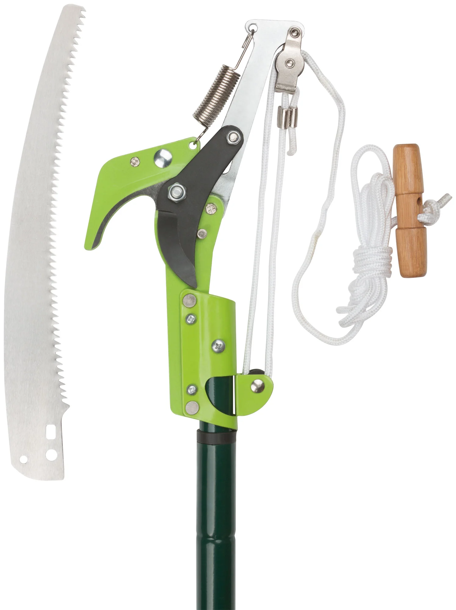 Идеально подходит для обрезки высоко расположенных веток и ухода за кронами деревьев. Сучкорез оснащен телескопической стальной ручкой, регулируемой от 1200 до 2400 мм, что позволяет без труда добраться до труднодоступных участков.