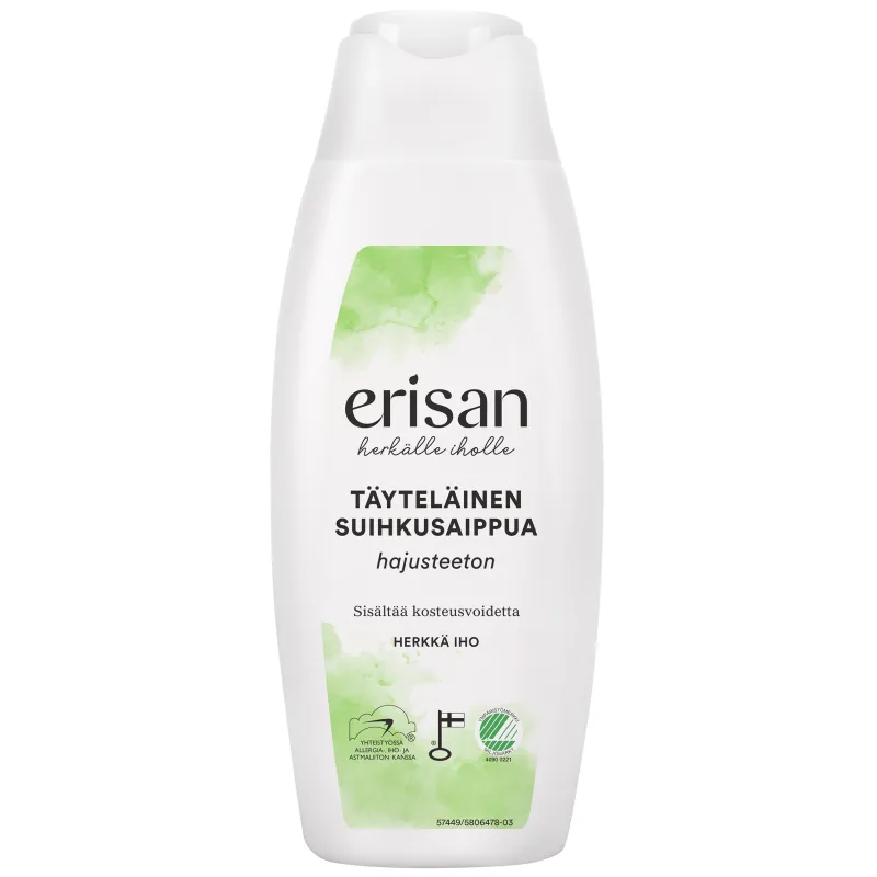 Гель для душа Erisan 250 мл - это насыщенное средство, которое бережно очищает чувствительную кожу всей семьи. Подходит для частого использования. Мягко пенящаяся формула делает кожу бархатистой и эластичной, содержит 33% увлажняющего крема. Не содержит отдушек и красителей. Разработан в сотрудничестве с Ассоциацией аллергии, кожи и астмы. Произведено в Финляндии. Упаковка 250 мл.
