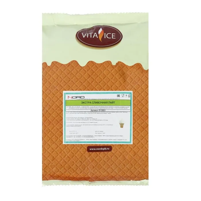 - Для приготовления мороженого без фризера: 1 кг сухой смеси растворить в 2,8 – 3,0 л молока жирностью от 3,2%, смешать, выдержать 20 минут, взбить миксером и залить в формы. поставить в морозильную камеру на 3-4 часа.