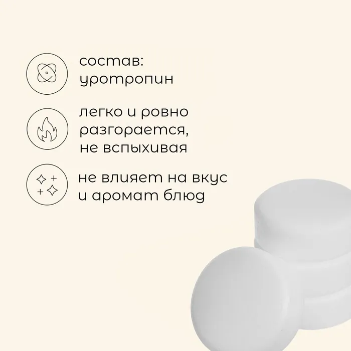 Сухое горючее подойдёт для туристов, лесников, охотников и путешественников. С помощью такого горючего можно разжечь костёр и подогреть еду. Данное горючее имеет круглую форму.