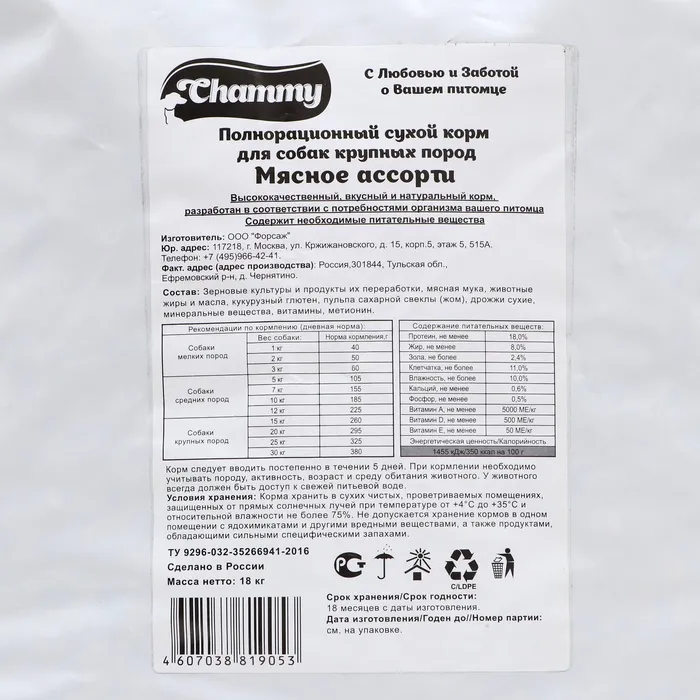 CHAMMY с мясным ассорти - это сбалансированное и вкусное питание, изготовленное с использованием ингредиентов высокого качества для поддержания здоровья и жизненной энергии Вашего питомца.