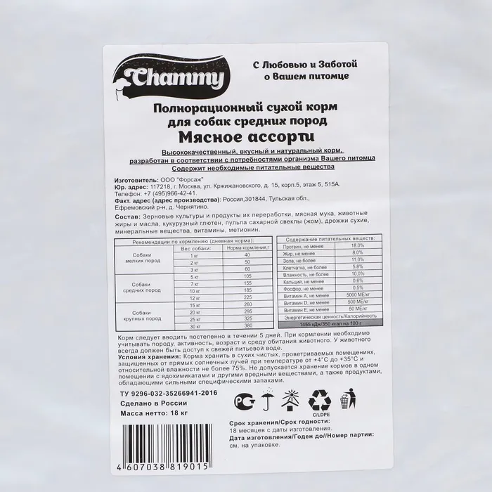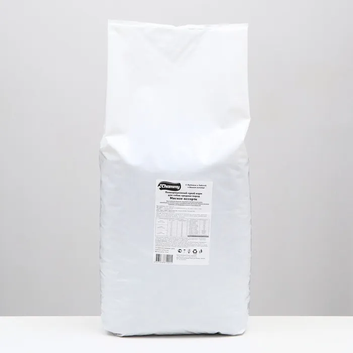 СHAMMY с мясным ассорти - это сбалансированное и вкусное питание, изготовленное с использованием ингредиентов высокого качества для поддержания здоровья и жизненной энергии Вашего питомца. Качественное здоровое питание для домашних животных - главная задача деятельности компании-производителя.