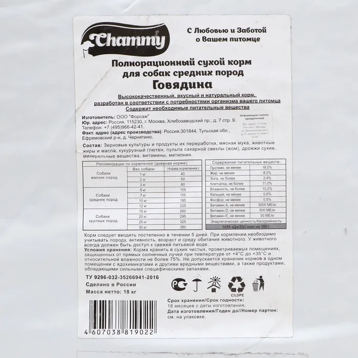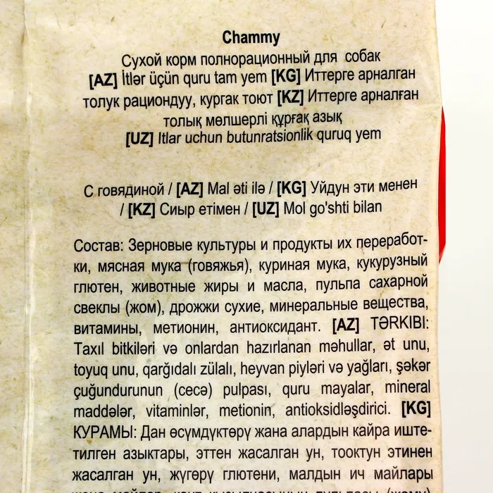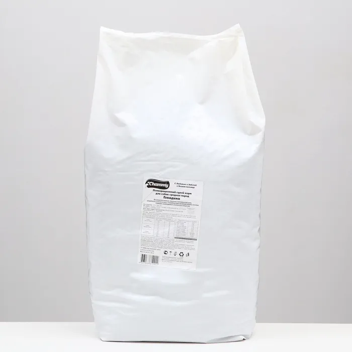 CHAMMY с говядиной - это сбалансированное и вкусное питание, изготовленное с использованием ингредиентов высокого качества для поддержания здоровья и жизненной энергии Вашего питомца.