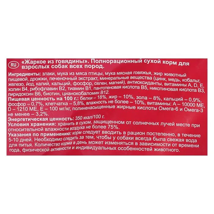 Сухой корм для собак Puffins "Жаркое из говядины" 15 кг — Характеристики