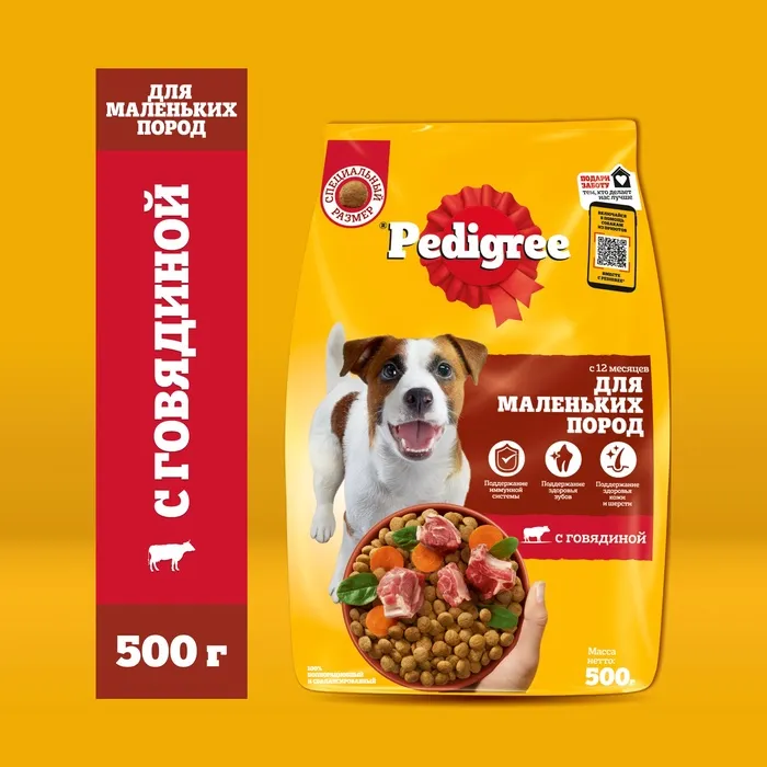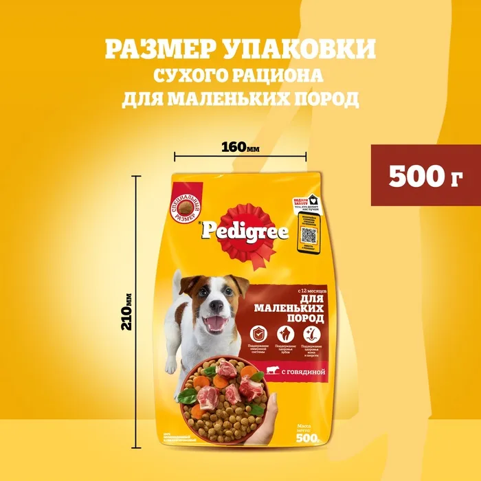 Сухой корм Pedigree для собак взрослых маленьких пород, говядина, 500 г — Характеристики
