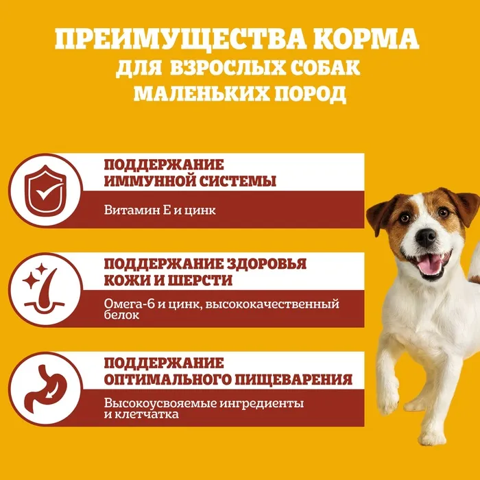 Проверенное качество: Pedigrie предлагает доступное решение для владельцев маленьких собак. Корм подходит для таких пород как той-терьер, чихуахуа, шпиц и других миниатюрных питомцев. Сбалансированный состав поддерживает здоровье собаки при ежедневном кормлении.