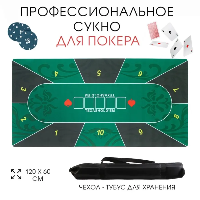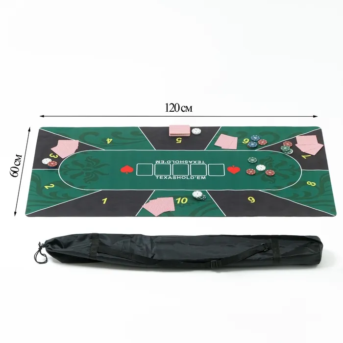 Профессиональное сукно - это незаменимый аксессуар для любого покерного игрока. Покер, будучи одной из наиболее популярных и захватывающих игр в мире азартных развлечений, требует особого подхода к организации игрового пространства. И именно сукно создает неповторимую атмосферу, позволяющую окунуться в мир покера и насладиться каждой секундой игры. Используя только лучшие материалы и передовые технологии производства, сукно является синтезом качества и стиля, гарантирующим вам комфорт и удовольствие во время игры.Полотно изготовлено из высококачественной ткани, которая обеспечивает гладкую поверхность для карт и фишек, а также защищает их от скольжения. Благодаря своей прочности и износостойкости, сукно сохраняет первозданное качество в течение длительного времени, обеспечивая надежную основу для игры.