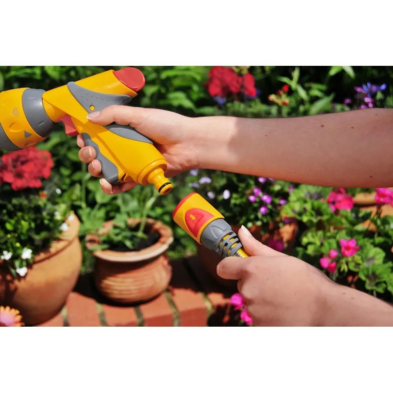 Hozelock Быстросъемный соединитель Plus 1/2"-5/8" обеспечивает надежное соединение и удобство в использовании. Клапан автоматически закрывает воду при отсоединении аксессуаров, что делает его идеальным для использования с шлангами диаметром 12,5-15 мм. Все внутренние части изготовлены из прочного технического пластика, который обеспечивает долговечность и отсутствие протечек. Тройная система блокировки гарантирует безопасность соединения до 10 бар. Мягкая и приятная на ощупь поверхность позволяет легко отсоединять соединитель даже в мокром состоянии. Специальные зацепы внутри и снаружи шланга обеспечивают прочное соединение, а гибкий наконечник с гайкой практически исключает перегибы, вздутие и протечки в месте соединения.