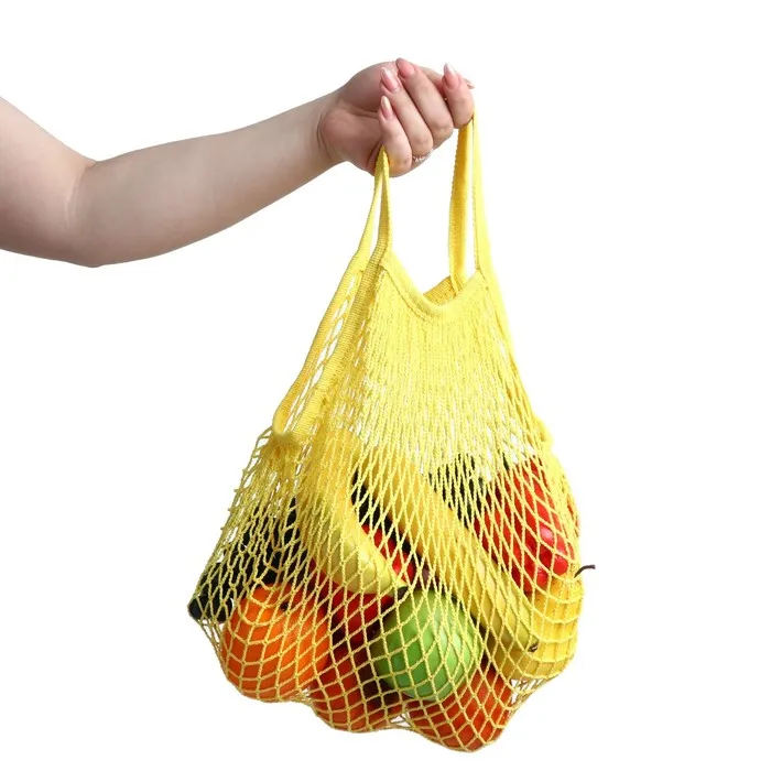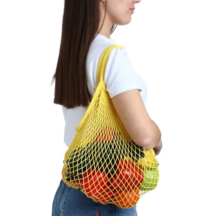 Сетчатые сумки из хлопка, произведенного с заботой о людях и природе, позволят вам обходиться без одноразовых пластиковых пакетов, а значит, уменьшить воздействие на климат. Кроме того, в таких сумках можно хранить фрукты и овощи.