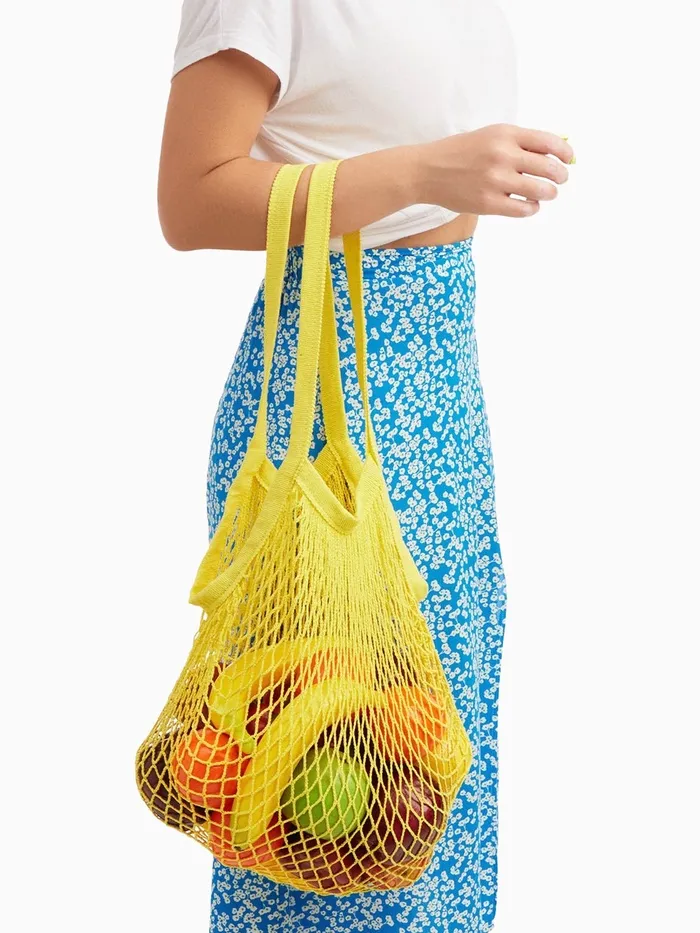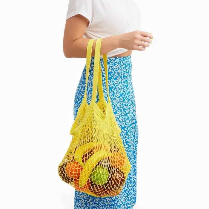Сетчатые сумки из хлопка, произведенного с заботой о людях и природе, позволят вам обходиться без одноразовых пластиковых пакетов, а значит, уменьшить воздействие на климат. Кроме того, в таких сумках можно хранить фрукты и овощи.
