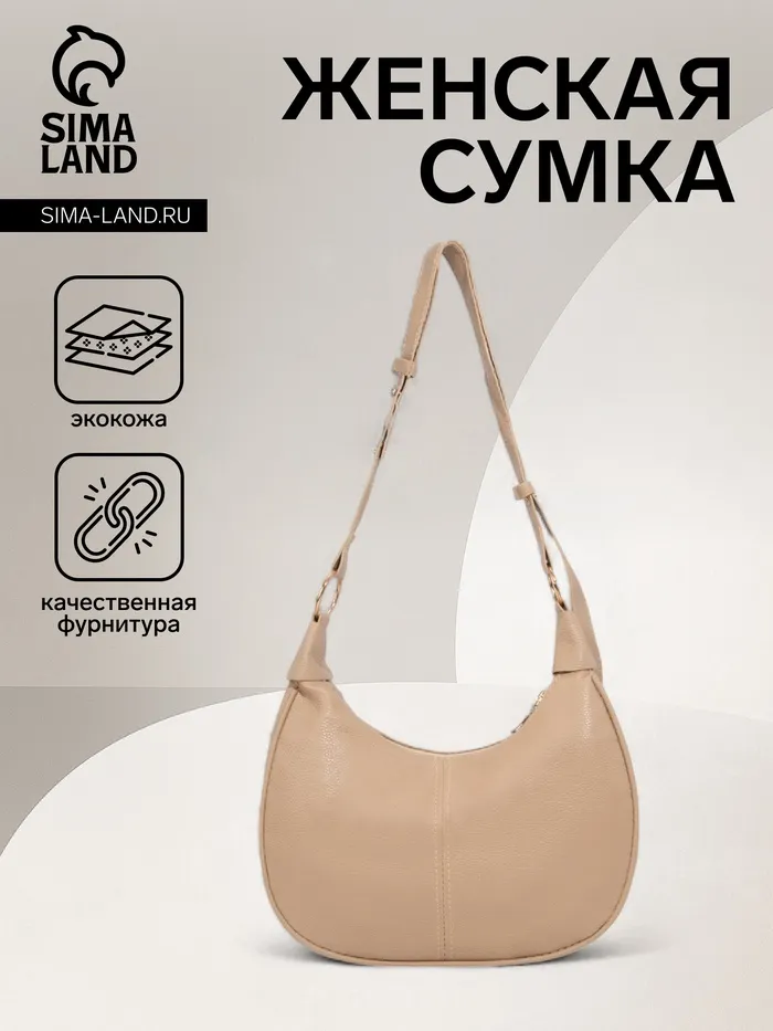 Сумка-багет на молнии, цвет бежевый — Характеристики