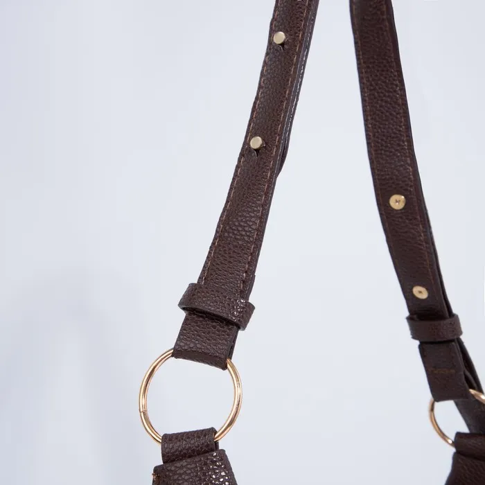 Коричневая сумка для повседневного образа. Классическая форма подходит для документов, телефона и косметики. Длинный регулируемый ремень с золотистой фурнитурой позволяет носить её на плече или в руке.
