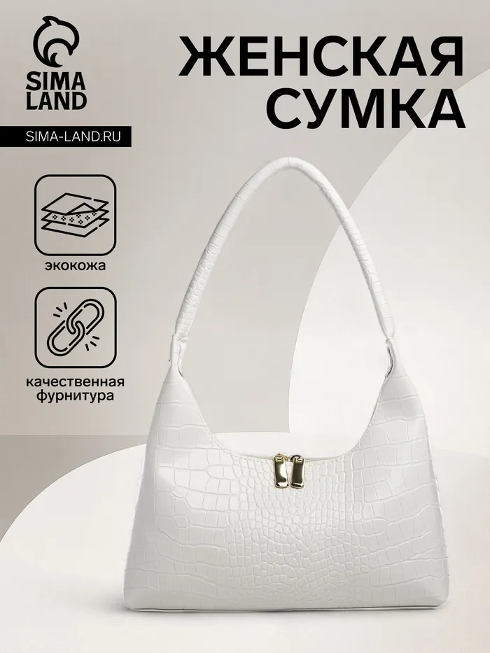 Сумка-багет женская, на молнии, на плечо, два замка, белая — Характеристики