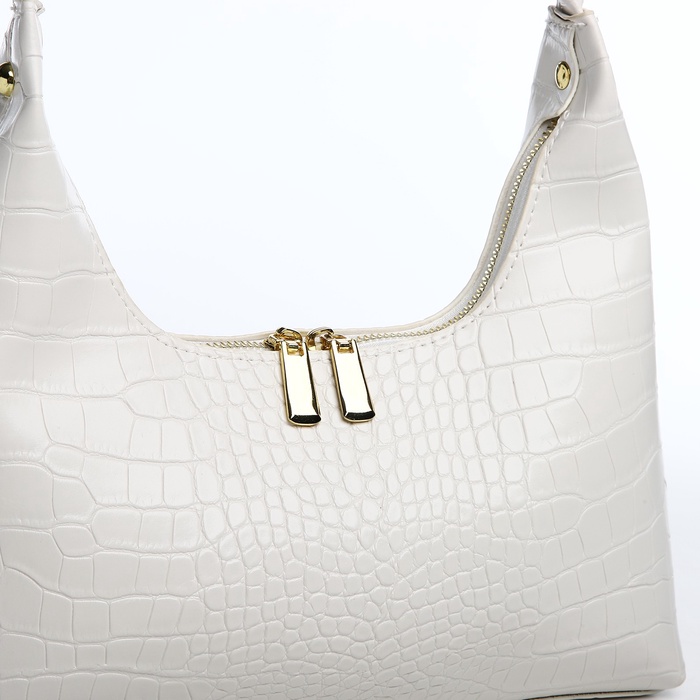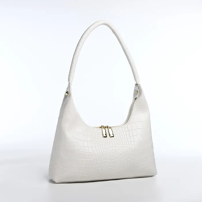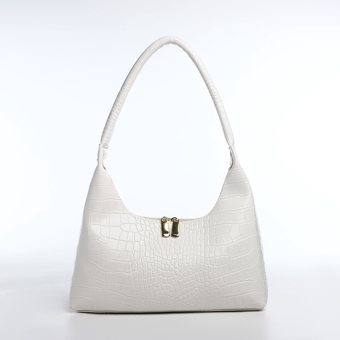 Сумка-багет женская, на молнии, на плечо, два замка, белая