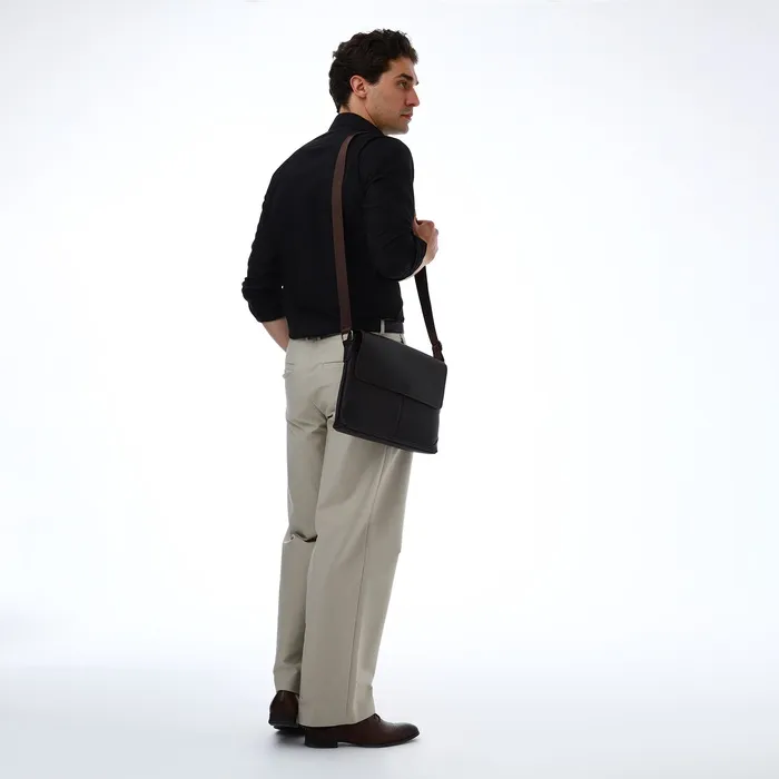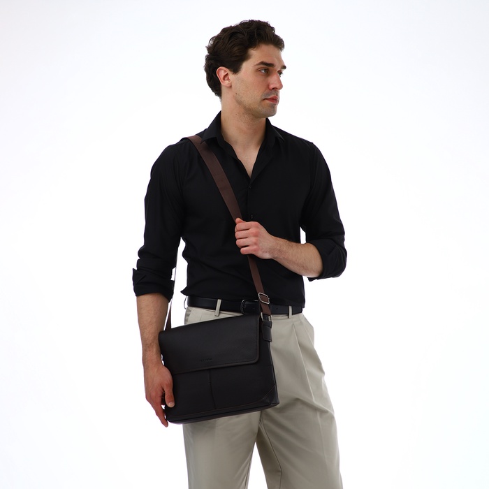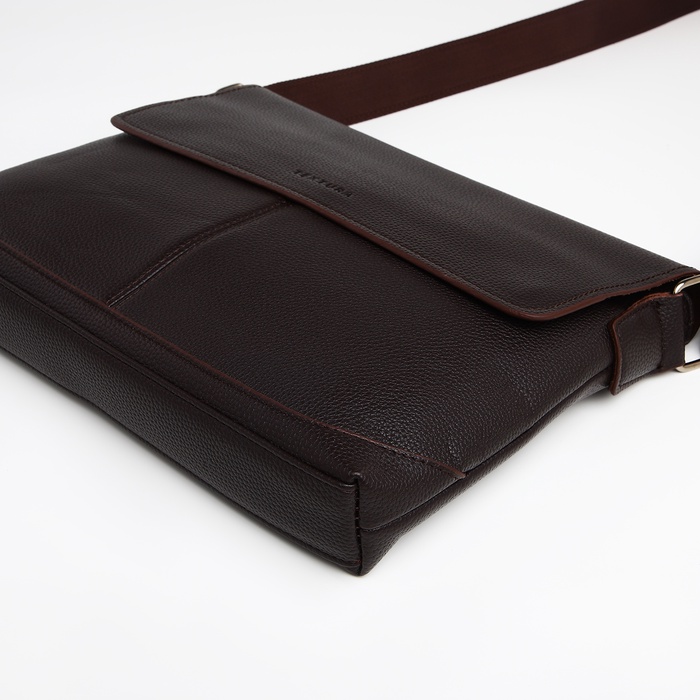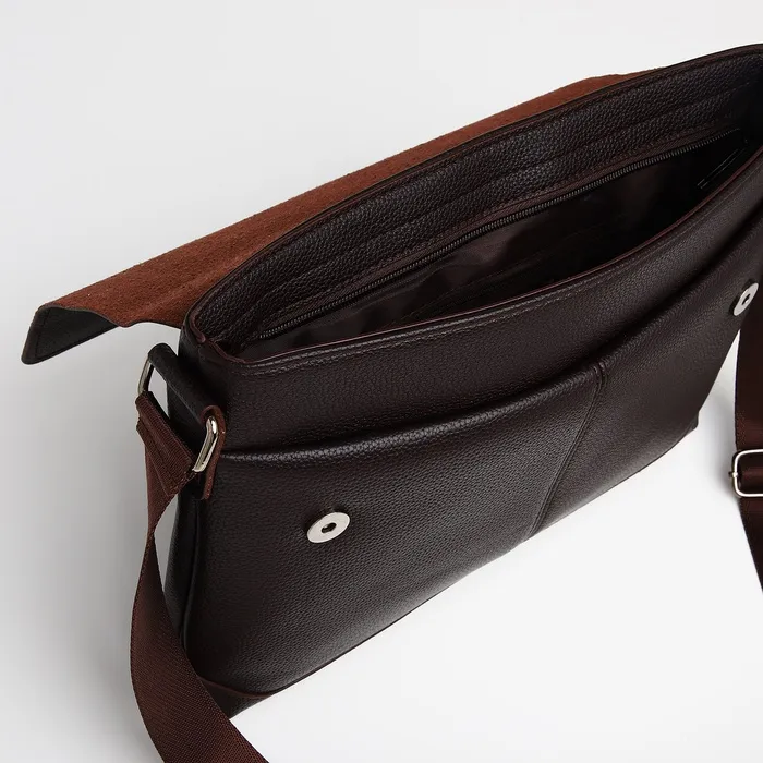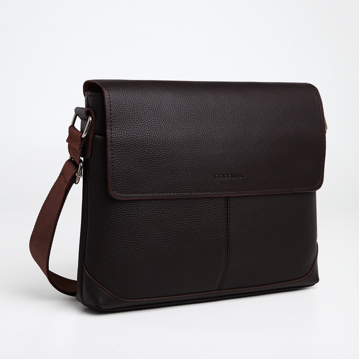 Сумка деловая мужская на молнии TEXTURA, 2 наружных кармана, коричневая — Характеристики