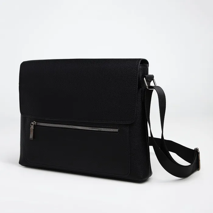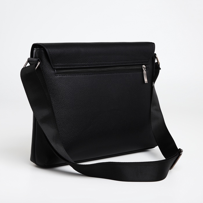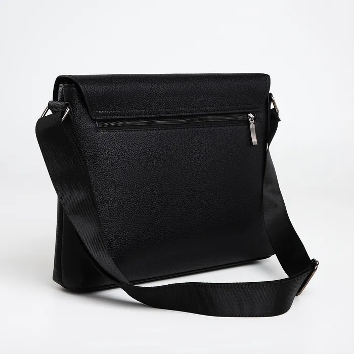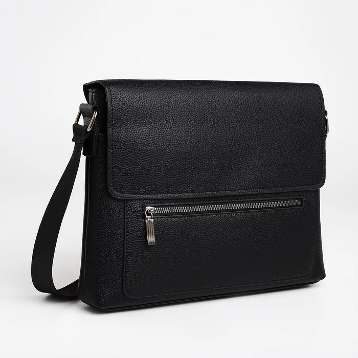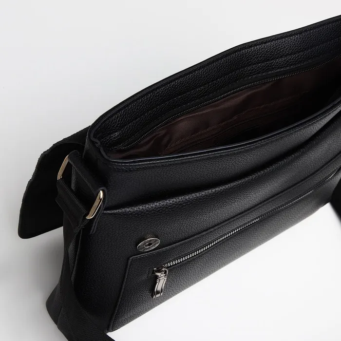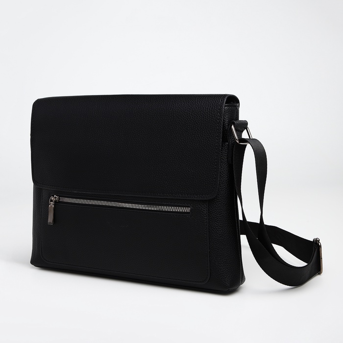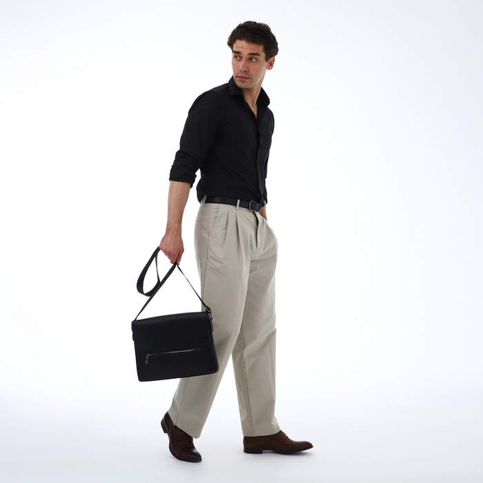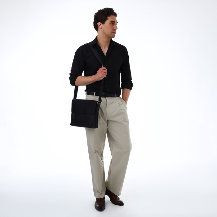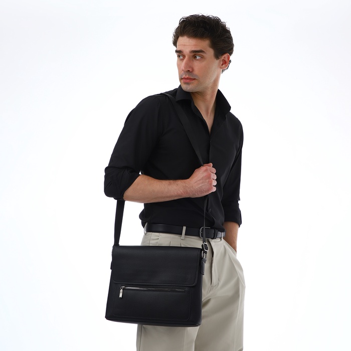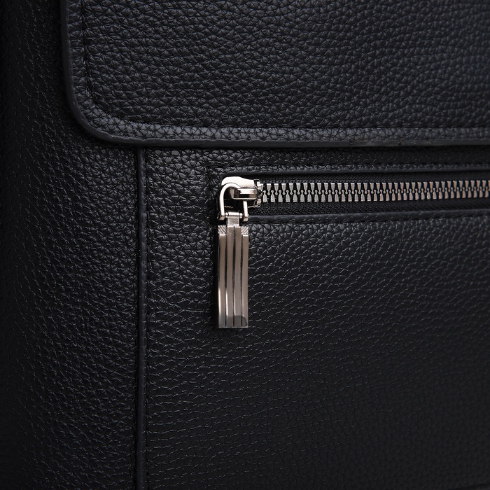 Сумка деловая мужская на молнии TEXTURA, 3 наружных кармана, чёрная — Характеристики